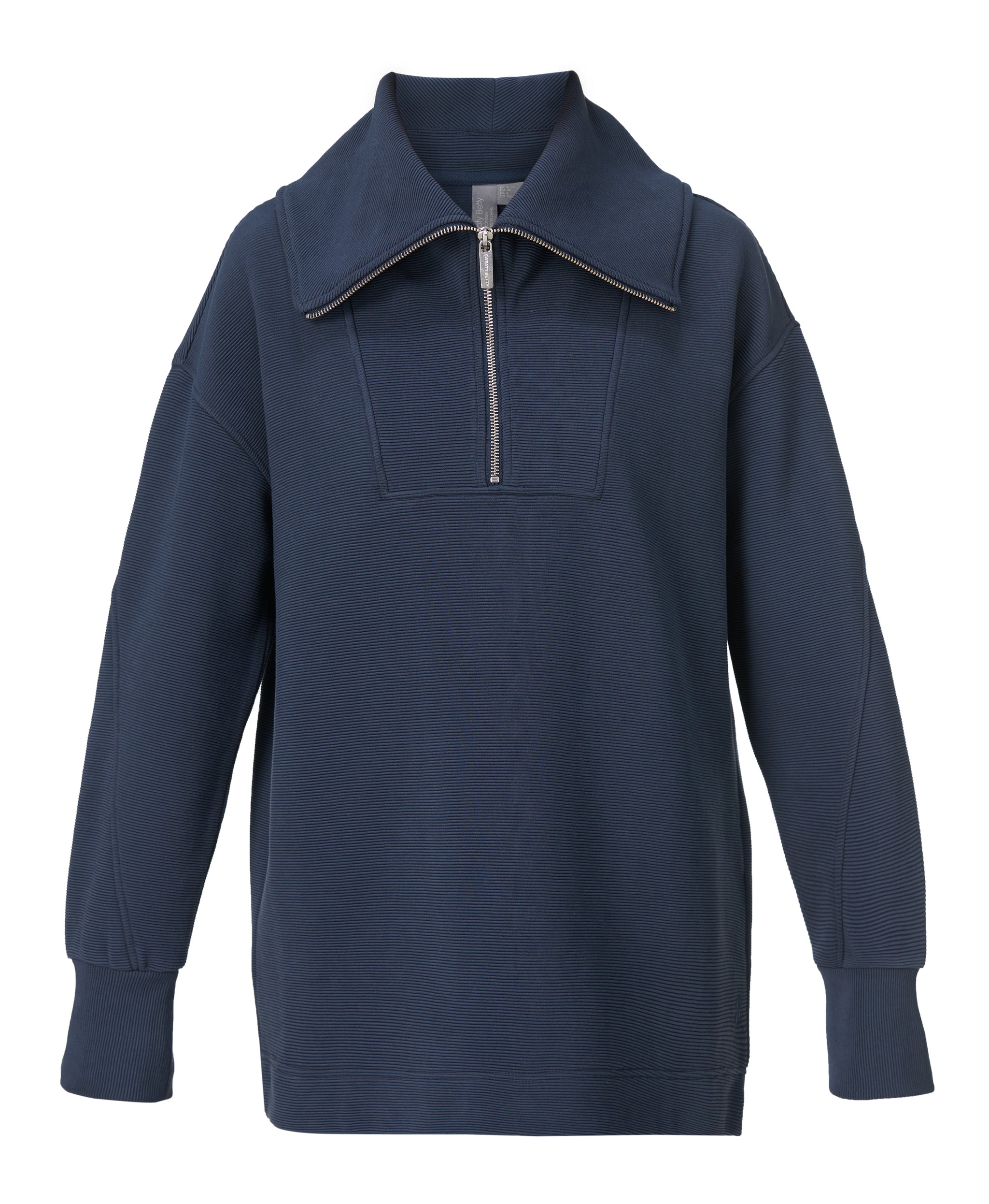 - Relaxed, oversized fit with loose hem and half zip