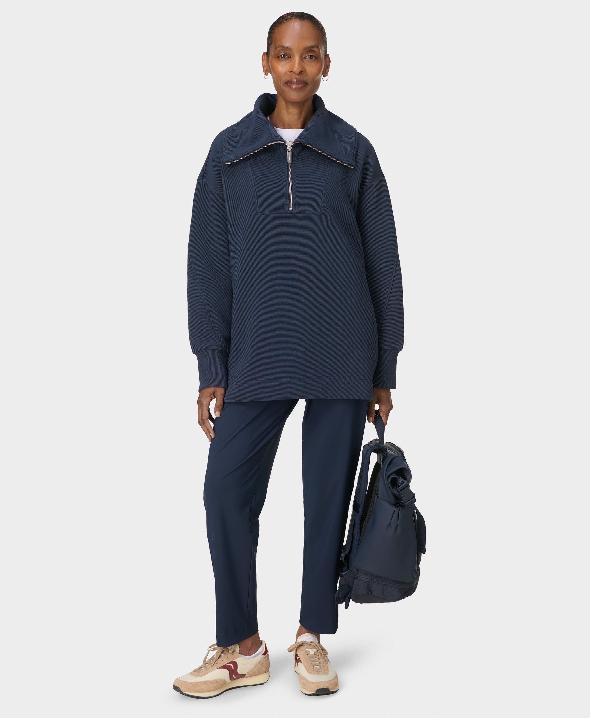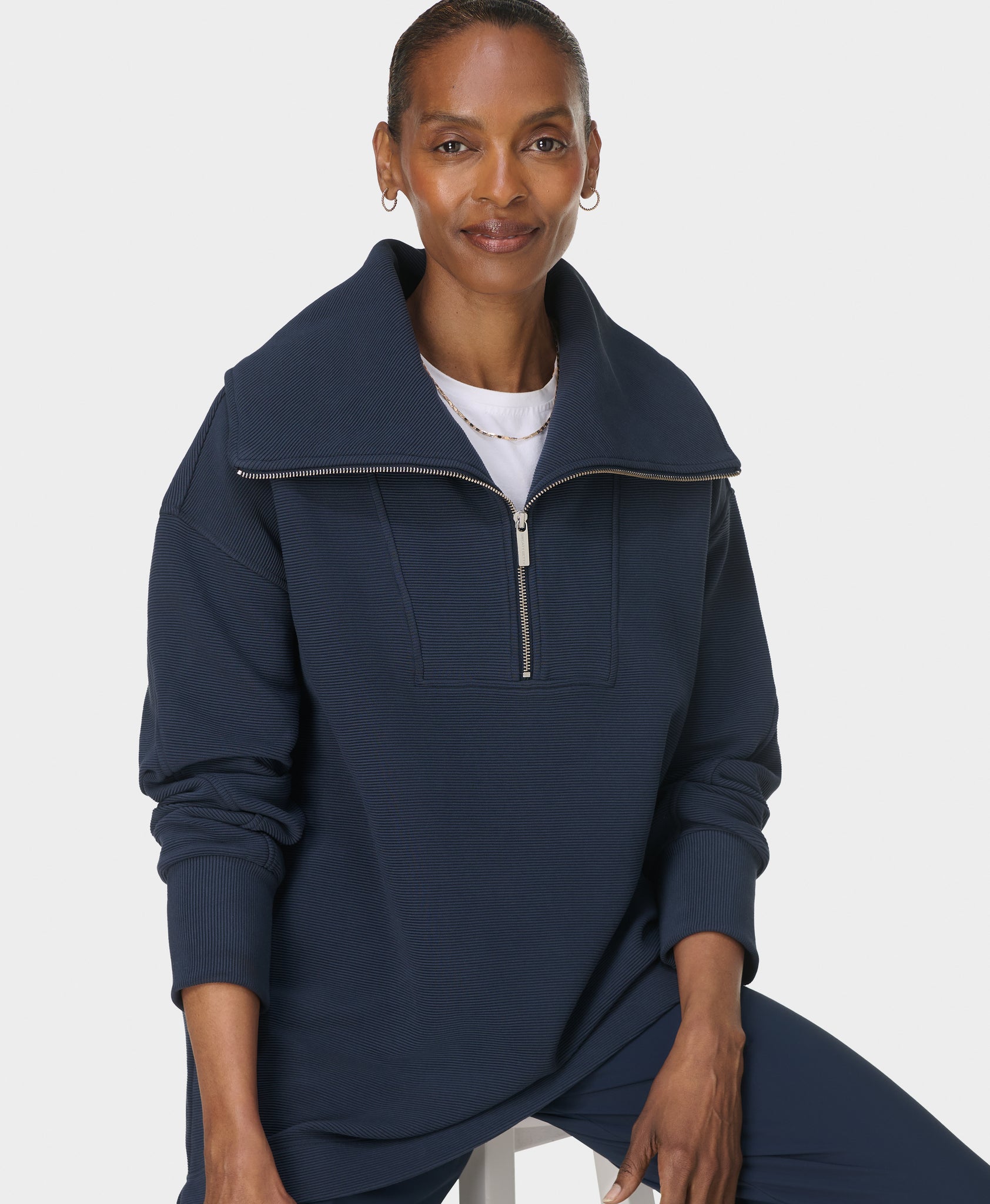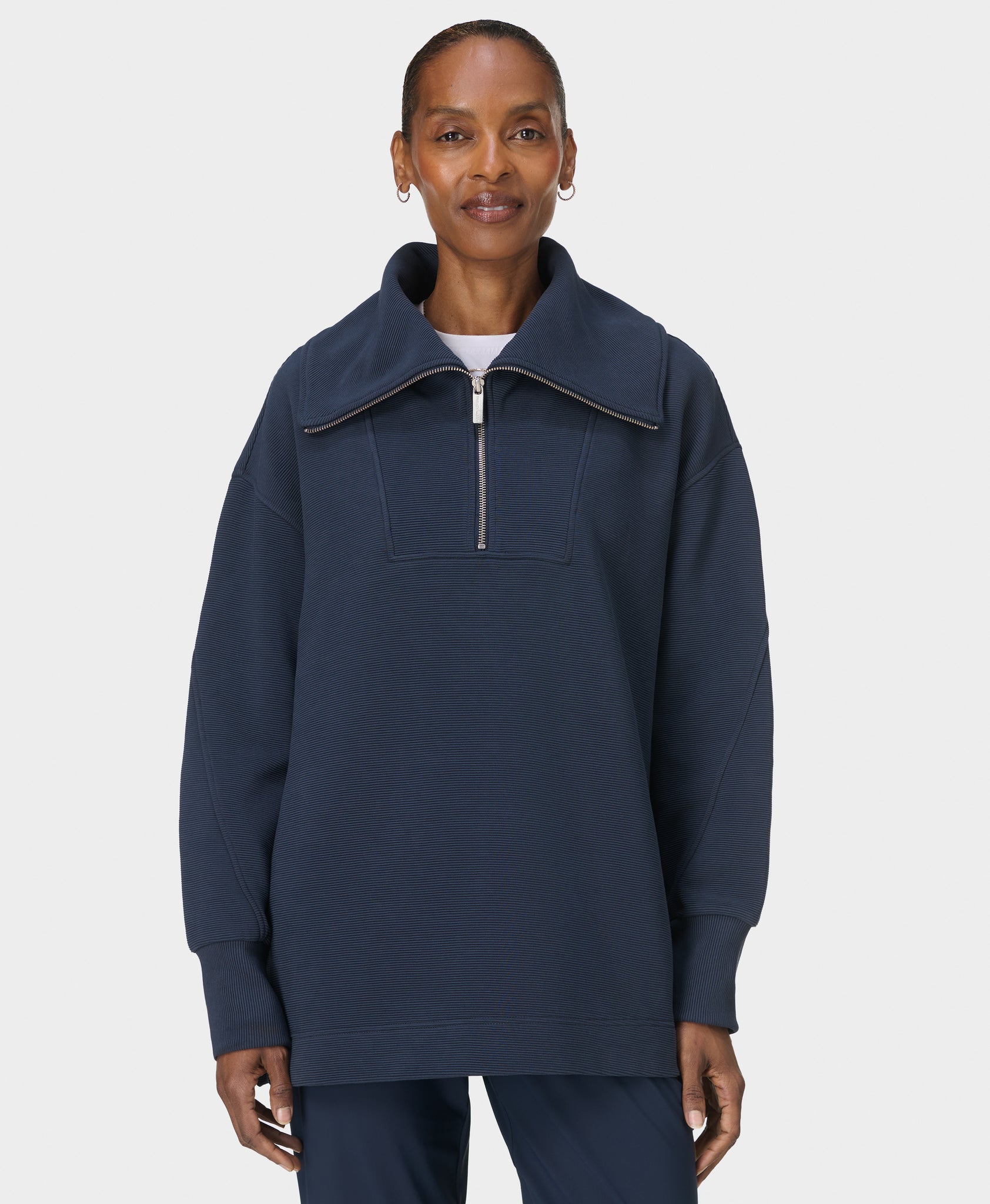- Our comfy ribbed half zip for studio-to-street style