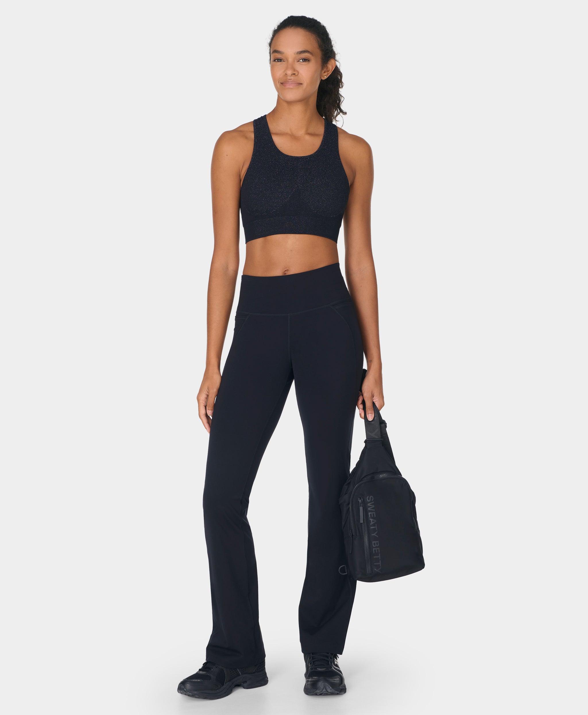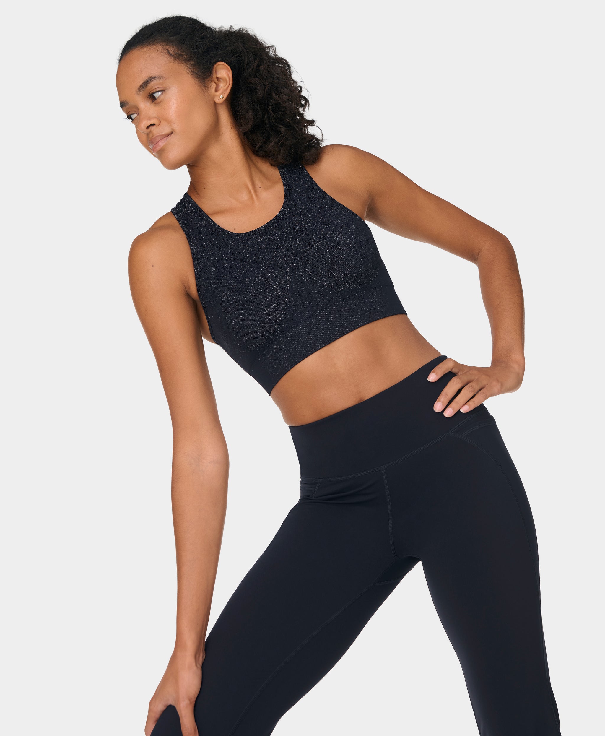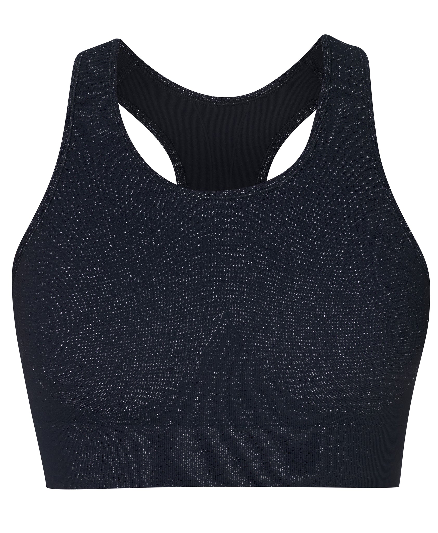 - Sleek, unpadded design with a rib contour underband to give support up to a C cup
