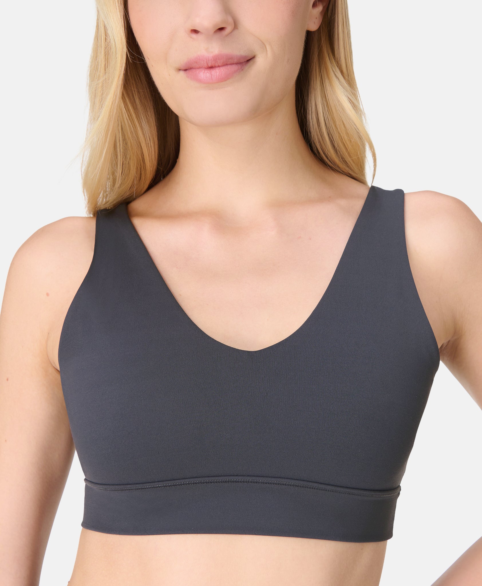 - V-neck scoop neckline and back with smooth underband