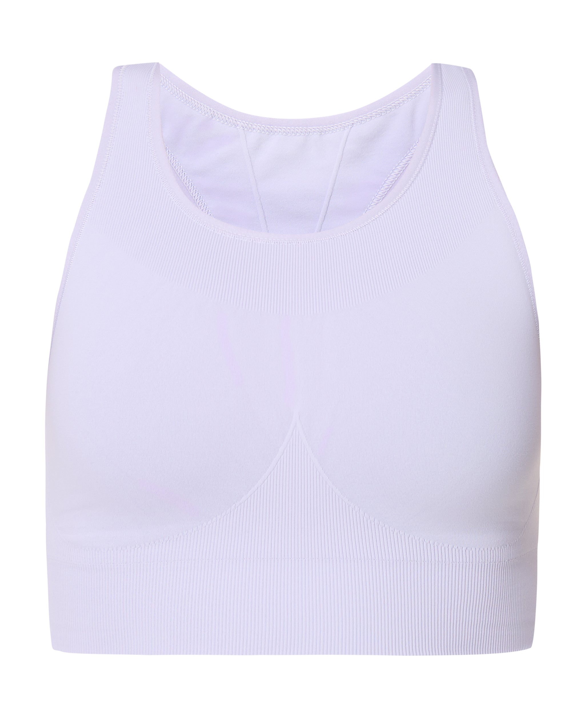 - Sleek, unpadded design with a rib contour underband to give support up to a C cup