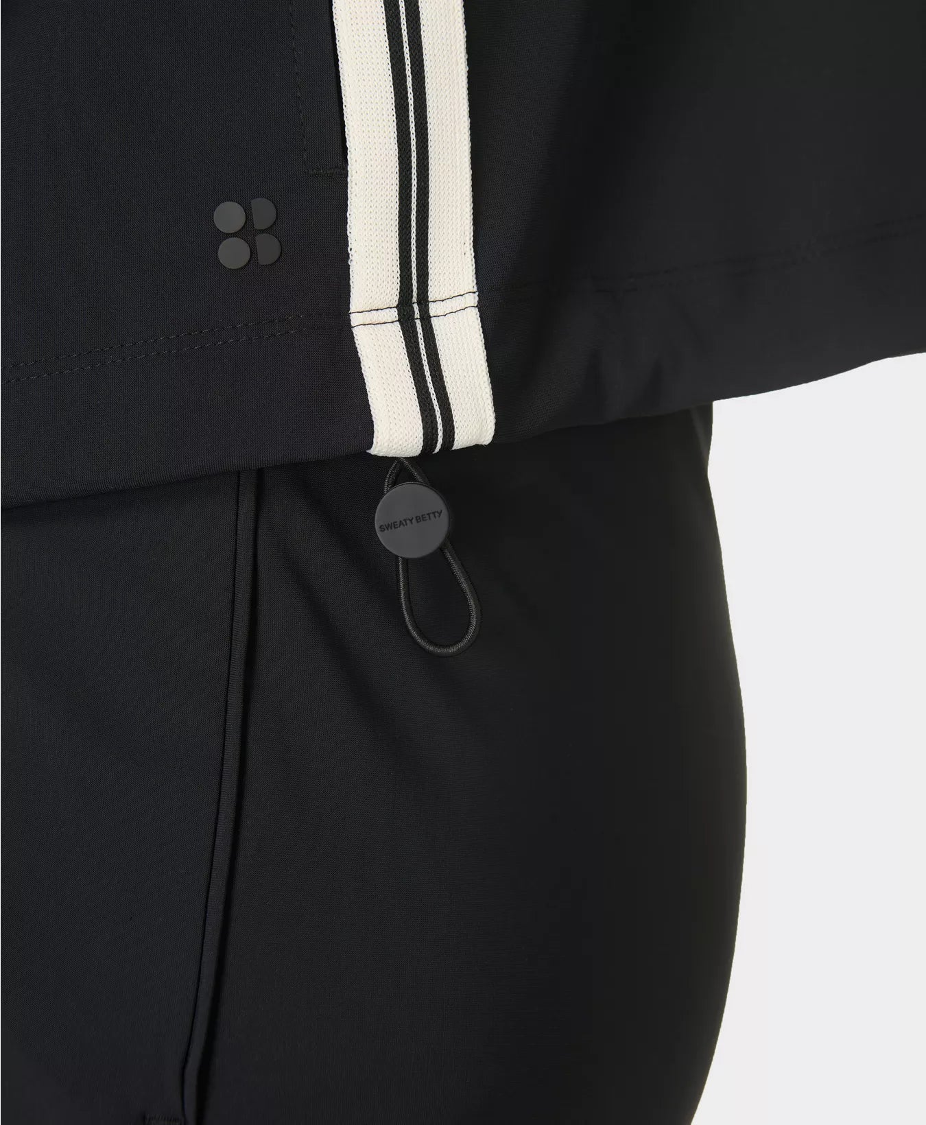 - Relaxed fit with tapered sleeves and a bungee at the hem to create a blouson effect